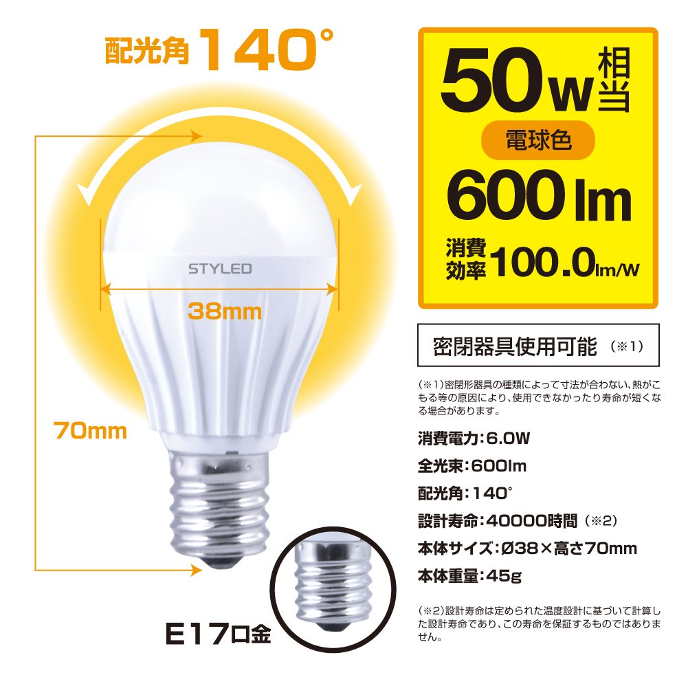 Since light spreading (light distribution) differs from a light bulb, appropriate light distribution and brightness may not be obtained depending on the type of appliance (such as the equipment in which the lamp is oriented sideways or diagonally)