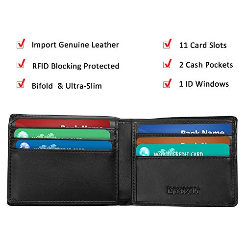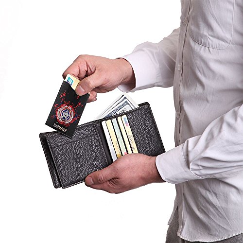 RFID BLOCKING DEW Leather Wallet are equipped with advanced RFID secure technology, protect your valuable data, block RFID readers from scanning your credit cards, debit cards, banking information, smartcards, RFID driver's licenses and other RFID cards.