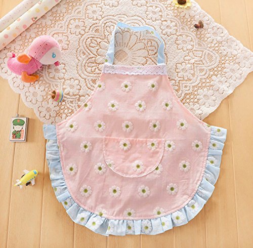 CRB Fashion Childrens Little Chef Flower Floral Ruffle Girls Toddler Kids Apron with Pockets (2T to 3T, Pink)