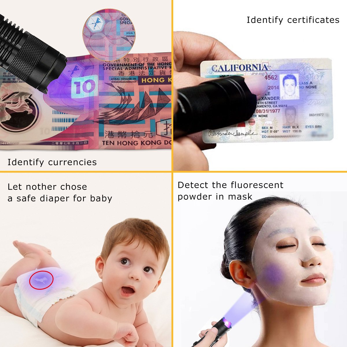 1 x Intsun 365 nm variable focus LED ultraviolet flashlight