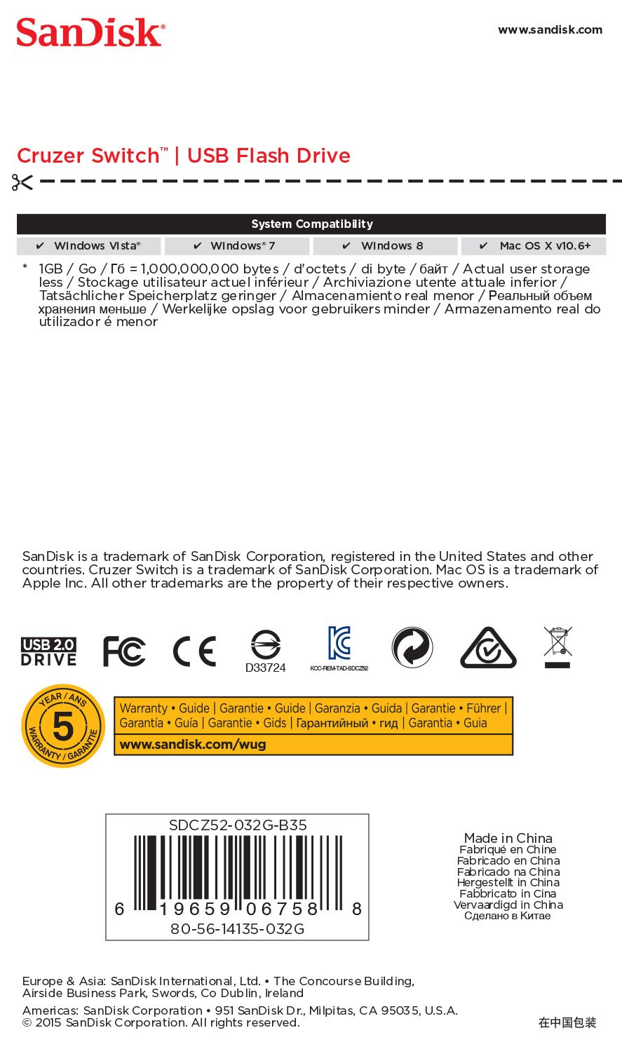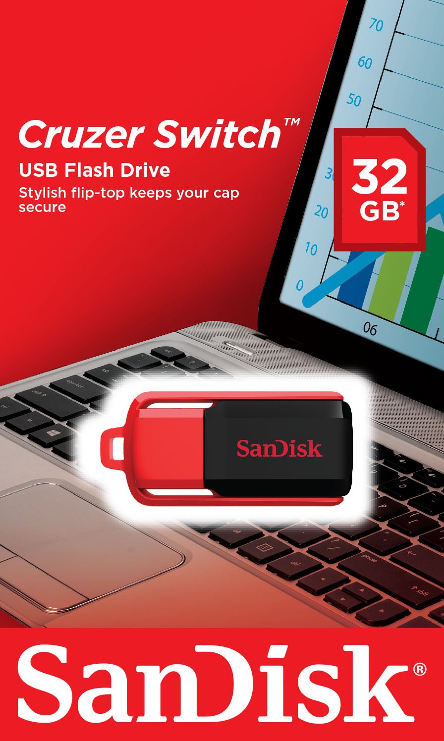 SanDisk Cruzer Switch CZ52 32GB USB 2.0 Flash Drive With SecureAceess Software- SDCZ52-032G-B35