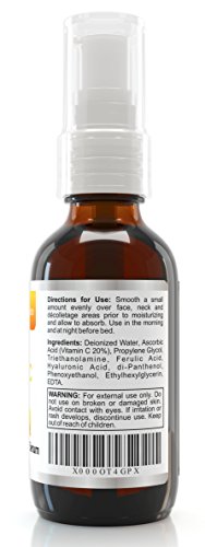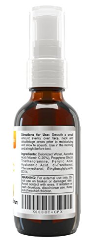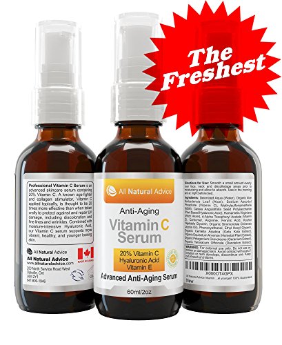 - Feature : A uniquely Canadian absorbent anti-aging serum with TRIPLE ACTION 20% VITAMIN C SERUM + HYALURONIC ACID + VITAMIN E. Goes on smooth, absorbs deep into your skin and dries extra fast allowing you to apply other applications to your skin! / FREE SHIPPING FOR PRIME DAY DEAL! DOUBLE THE SIZE of other brands – A full 2oz vs 1oz / Made in Canada and Certified Organic! Our Canadian secret is using the most stable all natural Vitamin C Serum, sodium ascorbyl phosphate that is the most effective absorbing deeper in your skin for faster results! / Watch as the depths of lines start reducing. Be amazed at the soft tingling feel of your face in addition to a smooth, cool and comfortable feeling. Our 20% Vitamin C Serum has the moisturizing power of botanically derived hyaluronic acid, natural jojoba oil, and the tightening and retention power of Witch Hazel. Works great for both Men and Woman / DOUBLE THE SIZE of other brands – A full 2oz vs 1oz