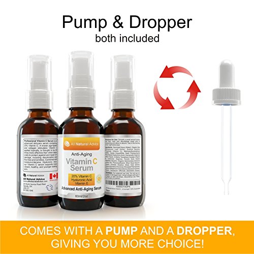 - Title : 20% Vitamin C Serum DOUBLE the size at 2 oz or 60 ml MADE IN CANADA Certified Organic with Hyaluronic Acid + Vitamin E Moisturizer + Collagen Boost, Reverse Skin Aging, Removes Sun Spots Wrinkles and Dark Circles, Excellent for Sensitive Skin - Both PUMP & DROPPER Included - 100% Guaranteed!