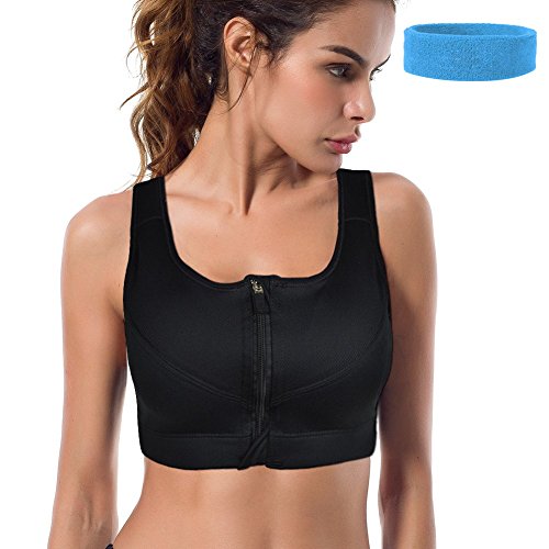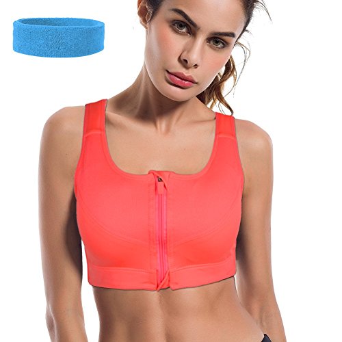 -. Feature : OFFER BETTER SUPPORT, MINIMIZE MOVEMENT - Make sure you get your right size. Sports bra is tighter than normal bra. Shinymod sports bra keeps everything in place, would not shift around, do not have to constantly adjust, would not ride up. Wearing it you can feel secure and supported. Shinymod sports bra is the most reliable style of bra for you to ensure no embarrassing bouncing, movement up and down or side to side anymore, Shinymod sports bra do prevent damage of coppers ligaments / CONVENIENT & SAFE FRONT DESIGN - Shinymod sports bra with the front zipper super easy to wear and take off, more convenient than the bra the pull on over head bra. Zipper covers over the zipper part top and bottom of the zipper which eliminates any scratching or poking. Shinymod sports bra is safer than no zipper cover bras which always jabs into chest and mid chest area. Removable pads of our sports bra also provide protection / ADJUSTABLE, EASY TO FIND YOUR MOST CUSTOMIZABLE FIT - Three rows hooks and eye closures and super soft velcro adjustable shoulder straps of our sports bra offer the most customizable fit. Our sports bra straps are wider. Wide straps better disperse the weight and offer greater comfort than narrow ones, help you feel more secure and provide minimal stretch to reduce up-and-down movement / TOP PERFORMANCE WICKING FABRIC - Shinymod sports bra is made of 94% polyamide and 6% spandex, move moisture away from your skin, fast dry, would not leave you very sweaty, keep your skin fresh. Super soft, comfortable, antibacterial, keep shape and do not shrinks or hold in odors / THE BEST COMPANION TO SPORTS - Shinymod sports bra is perfect for all sports, such as running, yogo, jogging, cycling, hiit, rope skipping, tennis, badminton, dancing, etc. The higher the intensity of your workout or sport, the more protection and support you will need. Trust Shinymod, we won't let you down. SurP.R.Ise bonus: 1 pc sports headband, color sent randomly