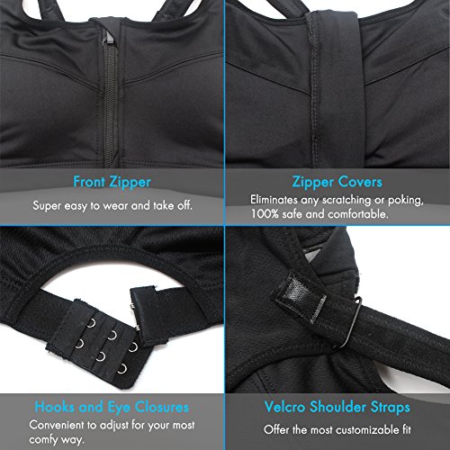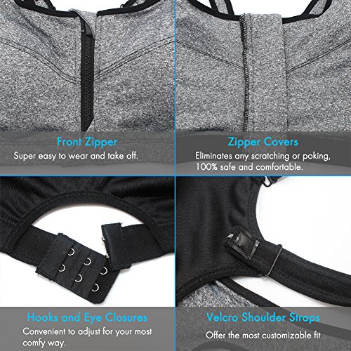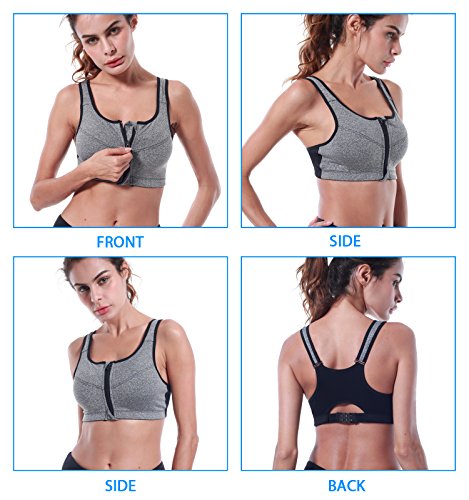 -. Title : Sports Bras, Shinymod Front Zipper Compression High Impact Fitness Sports Bra