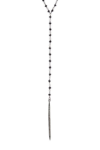 Just like a prayer, Terry's style will take you there! Black rhodium plated sterling silver spike pendant Y-necklace. .30 carats of champagne diamonds. Black spinel and black rhodium plated sterling silver station chain. Chain measures 24 inches with a 4 inch drop. Spike pendant measures 2 inches in length.Feature