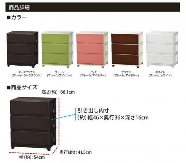 | サイズ | 本体:(約)幅540×奥行415×高さ661mm、引き出し:(約)幅463×奥行361×高さ161mm 個装サイズ:56×43×45cm |