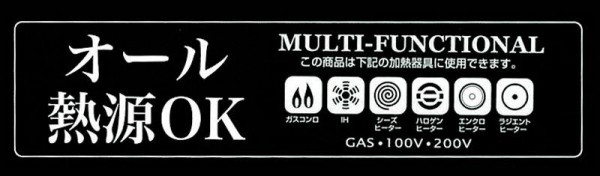 | 仕様 | 食洗機・乾燥機不可 オール熱源(ガス、IH100V・200V、シーズヒーター、ハロゲンヒーター、エンクロヒーター、ラジエントヒーター)対応 |