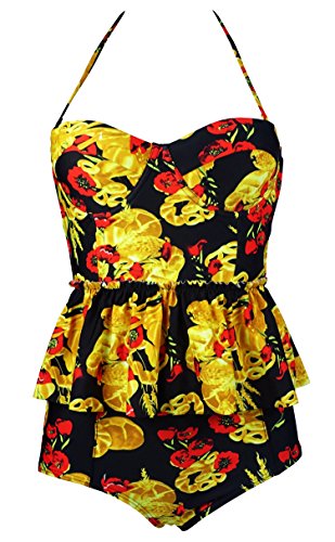 -. Feature : Fast Ship(FBA):Fulfilled by Amazon with two-day Shipping(Ship from USA) / Hand Wash Cold, Line Dry;Polyester Spandex Swimsuit Fabric / Peplum, adjustable straps, high-waisted with push up padding bra / Pattern: Retro Chic Antigua Floral Peplum Two piece Straps High waisted Swimsuit / Package Includes: 1 x Bikini set(top & bottom).