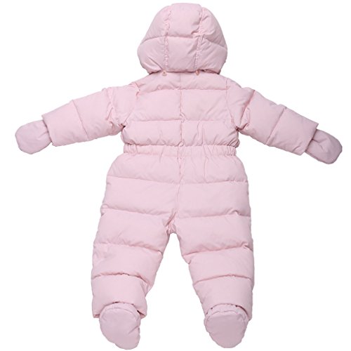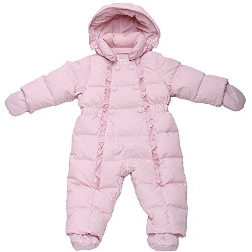 All parents understand the need for warm one-pieces and this delightful example is one of the best available. This model is designed with very young girls in mind and comes in a fashionably feminine design. Velvety soft to the touch, this one-piece is super useful with its removable hood and mittens to keep little heads and little hands, nice and warm in the winter.Feature