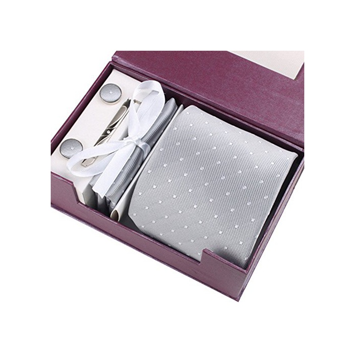 HappinessPlus(TM)넥타이 넥타이 핀 포켓 치프(chief) 커프스 4점 세트 비지니스/결혼식/2차 모임/파티 수납 박스 부착 그레이 【HPS-41199】