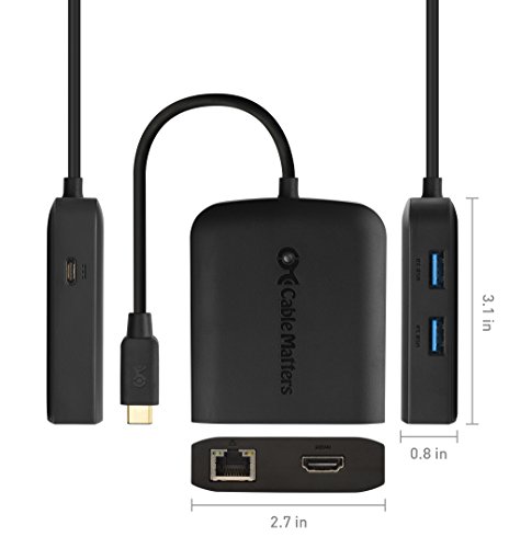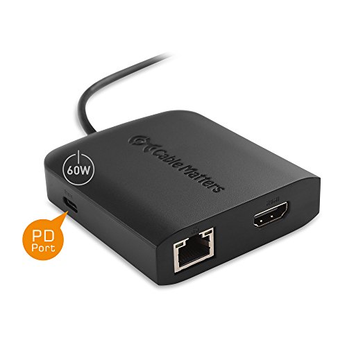 Cable Matters USB-C to 4K HDMI Multiport Adapter with 2x USB 3.0, Gigabit Ethernet, and Power Delivery (Thunderbolt 3 Port Compatible for 2017 MacBook and iMac) in Black