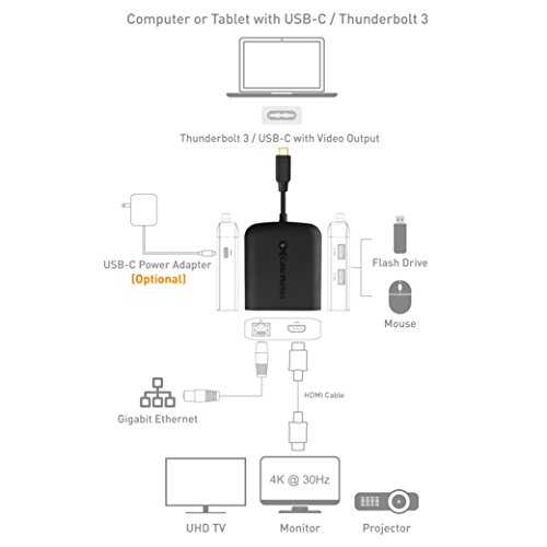 USB-C MINI DOCK adds Gigabit Ethernet, USB 3.0, and HDMI over a single USB-C connection; Connect to a computer with a USB Type-C or Thunderbolt 3 port; USB-C port of device requires DisplayPort Alternate Mode support to view video over USB