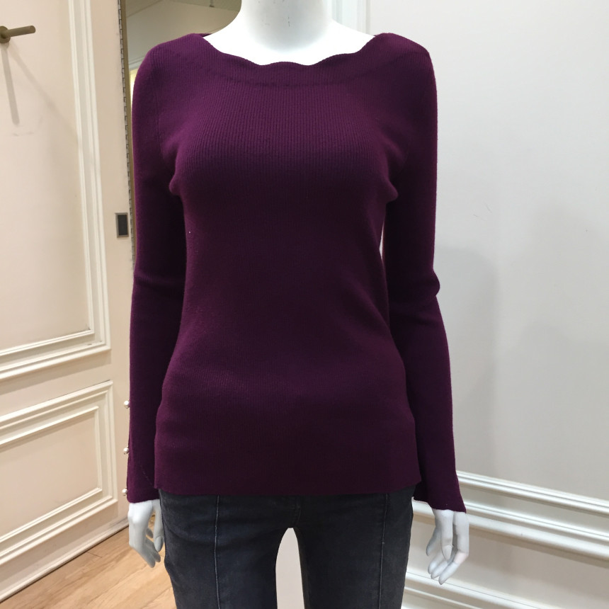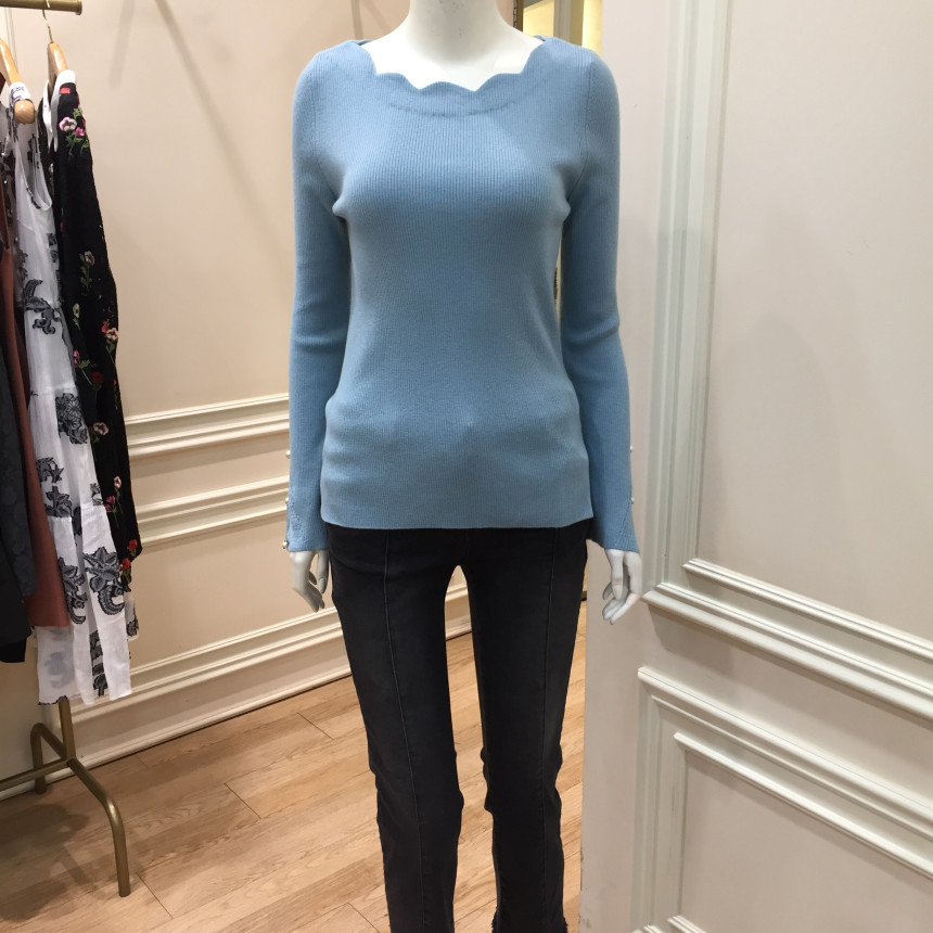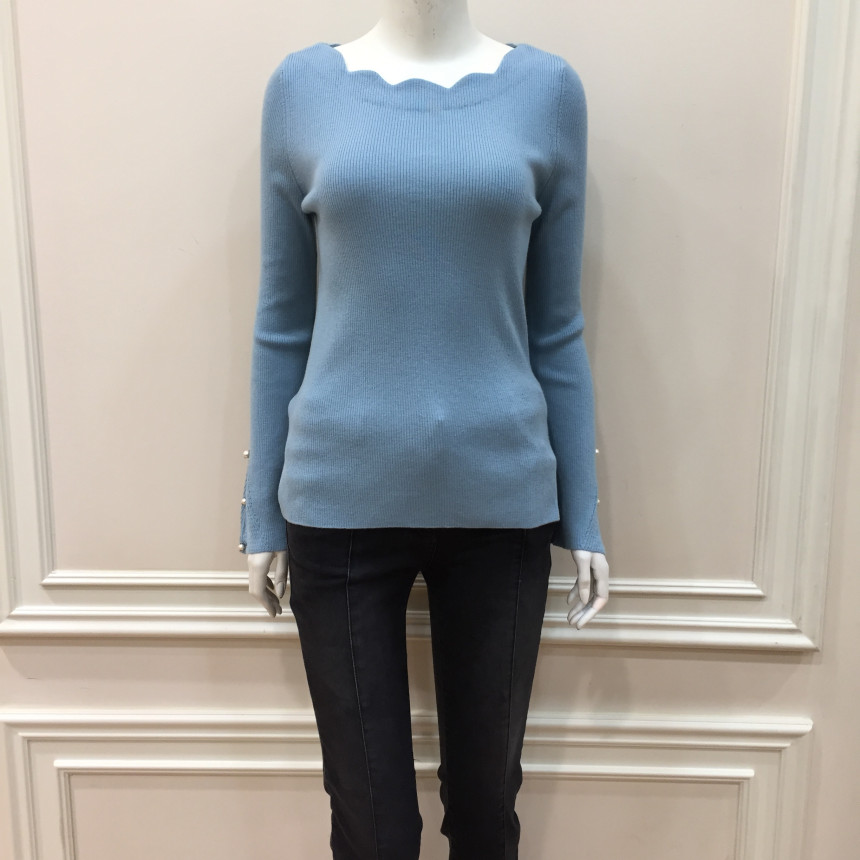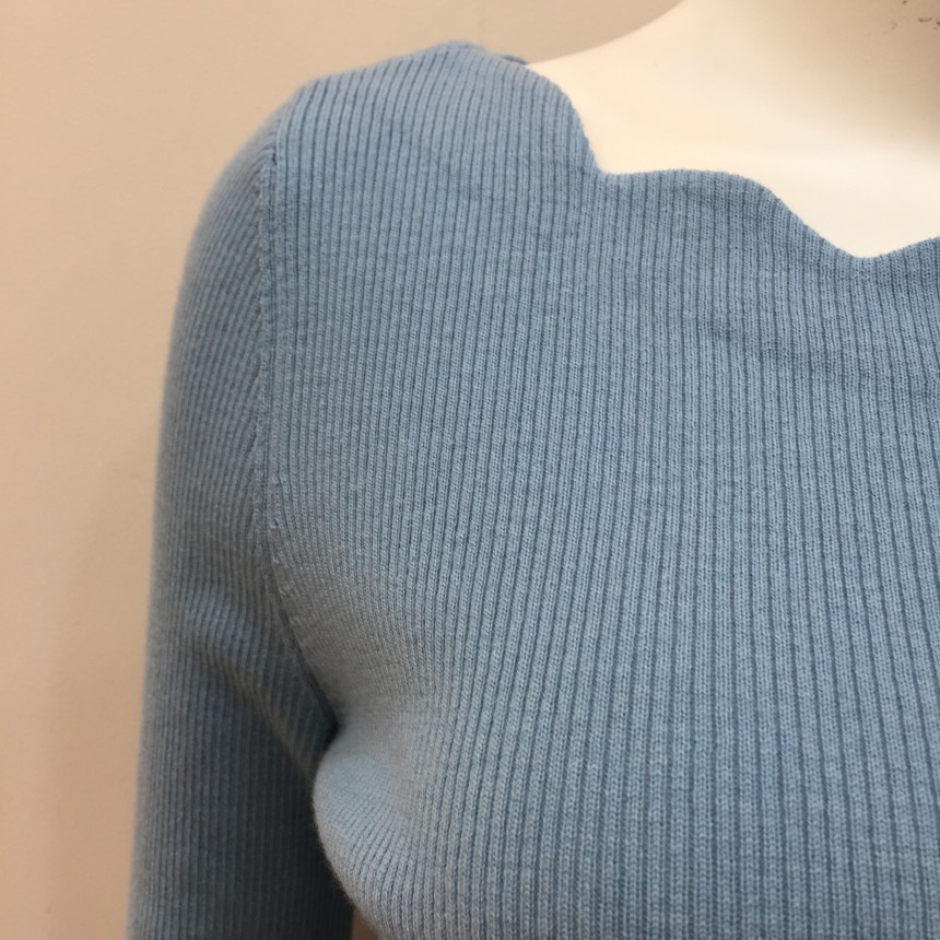 네크라인의 스캘럽디테일이 여성스러운 립조직의 풀오버입니다.