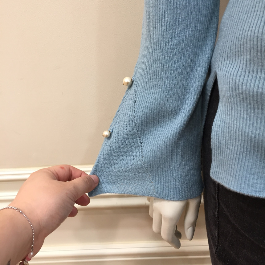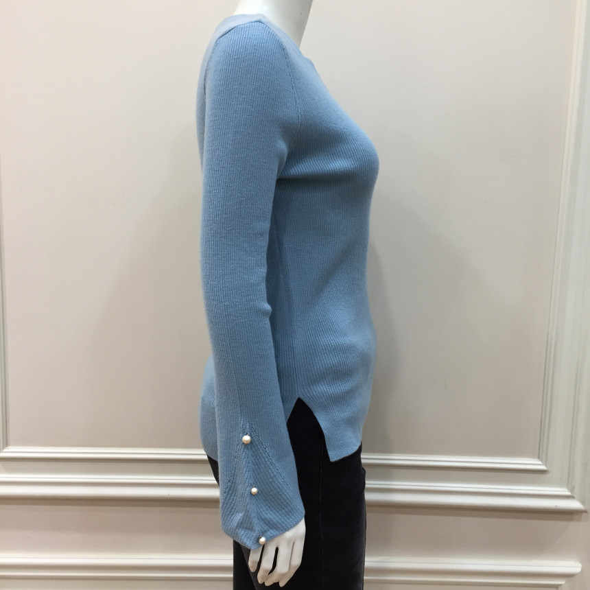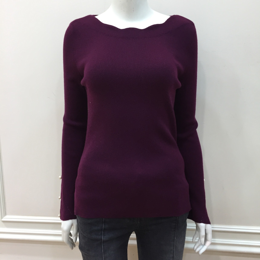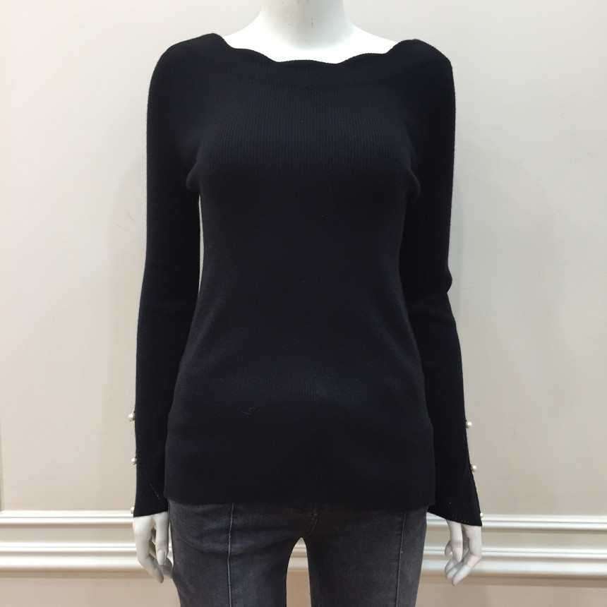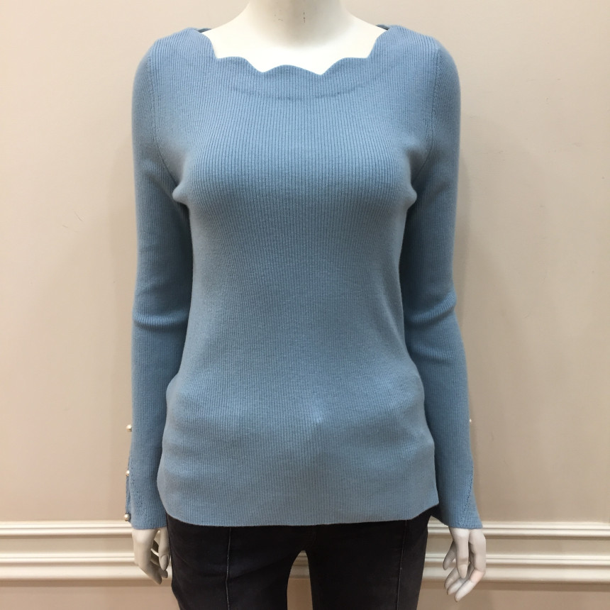 네크라인의 스캘럽디테일이 여성스러운 립조직의 풀오버입니다.