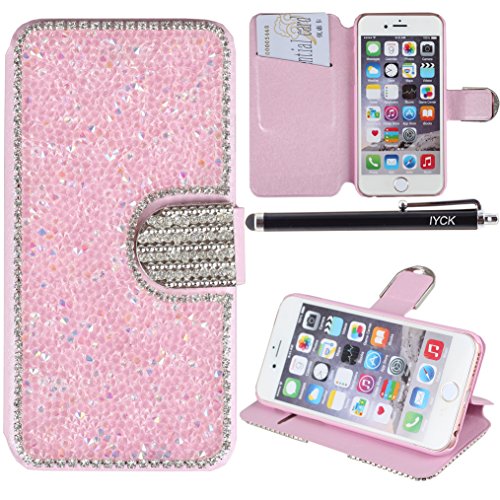 iPhone 6S Case, iYCK Luxury 3D Handmade Diamond Rhinestone Crystal Magnetic Closure Flip Folio Card Slot Leather Wallet Case Cover for iPhone 6/6S 4.7inch - Silver C