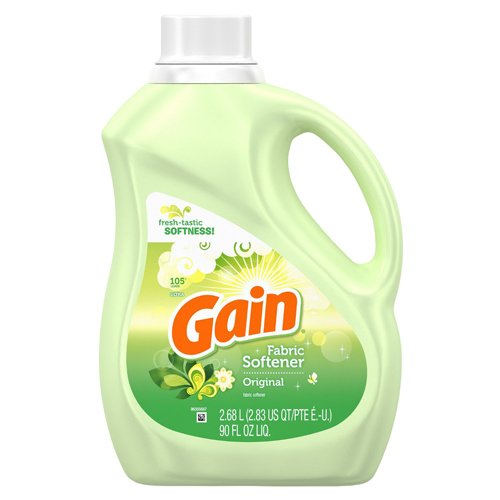 -. Binding : Health and Beauty -. Brand : GAIN -. EAN : 0037000495727 -. Feature : Keeps fantastic freshness in your clothes even after two weeks! / Original Scent combines these sniff-tastic elements: Overtones: Orange, lemon and blossoms with a modern fruity, green twist. Undertones: White floral jasmine with a hint of woody amber. / Get the Matching Scent in Gain Detergent! / Works in both standard and high-efficiency washing machines -. IsAdultProduct : 0 -. Label : Gain -. Manufacturer : Gain -. NumberOfItems : 1 -. PackageQuantity : 1 -. ProductGroup : Health and Beauty -. ProductTypeName : HEALTH_PERSONAL_CARE -. PublicationDate : 2010-11-01 -. Publisher : Gain -. ReleaseDate : 2011-02-28 -. Studio : Gain -. Title : Gain Liquid Fabric Softener with Freshlock Original Scent, 105 Loads, 90-Ounce -. UPC : 037000495727