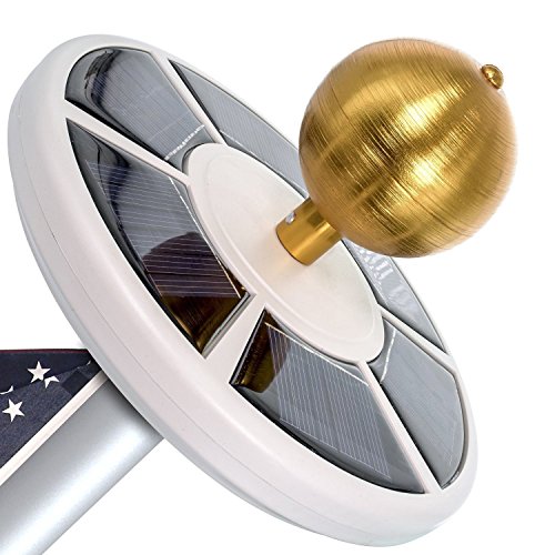 Be sure to turn the light ‘ON’ via the ON/OFF button before using it. Face the solar panel down, if light, it's ON. If not, please press it to turn it on. 100% Satisfaction Guarantee - Biggest size, brightest lights.Best Solar Flag Light in the World.Gold Flagpole Ball is not included.