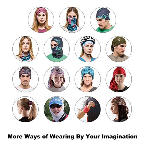 Products could be worn like as mask (face shield),headband,headwrap, headwear, bandana, do-rag, wristband, ponytail, neck gaiter, scarf and more by your imagination. Suitable for Running, Hiking, Riding, Skiing, Fishing, Hunting or other outdoor sports.