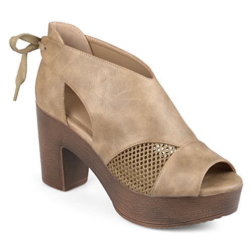 -. Binding : Apparel -. Brand : Journee Collection -. Department : womens -. Feature : These platform clogs are made with faux leather, faux wood and man-made materials / A round toe peep-toe is highlighted on this platform style / Heel height/type: 3.5-inch chunky / Platform height: 1.7-inch platform / Width: Medium -. ProductGroup : Shoes -. ProductTypeName : SHOES -. Title : Journee Collection Womens Open Toe Tie Back Platform Clogs