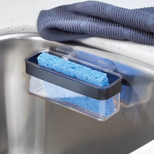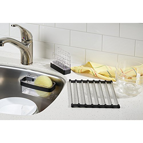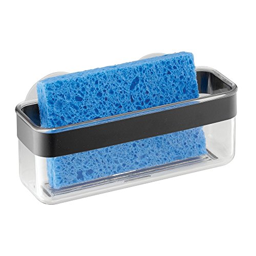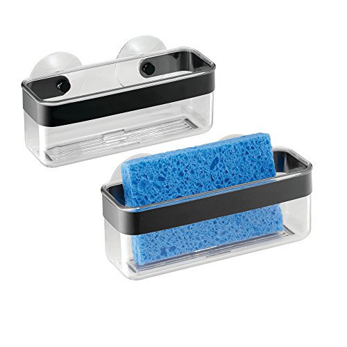 InterDesign Forma Kitchen Sink Suction Holder for Sponges, Scrubbers, Soap - Black/Clear