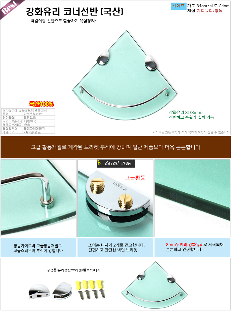- 품명 및 모델명국산 강화유리코너선반