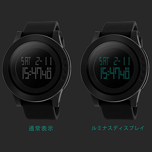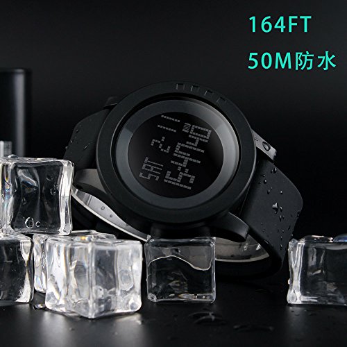 -. Title : BesWlzメンズデジタル電子防水LEDスポーツ腕時計カジュアルなクォーツミリタリー多機能12H / 24H時間バックライトシンプルなデザインと164FT 50M防水 - 黒