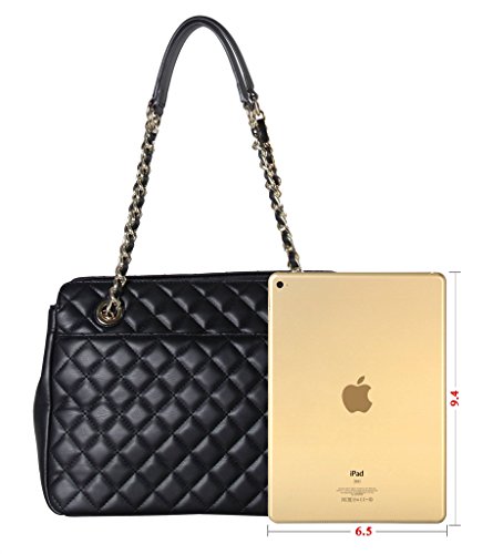 -. Brand : Rimen & Co -. Color : black -. Department : womens -. Feature : This handbag comes in 3 different colors: Black, Red, and White. / High Quality PU Leather Large Quilted Tote Accented with Chain Handle Womens Purse Handbag. / High Quality Fabric Lined Interior with Multiple Interior Pockets. 2 Compartments Separated by 1 Large Zippered Pocket. With 1 Zippered Pocket and 2 Open Pockets Inside. 1 Large Pocket in Front. / Approximate Size info: Length 12.4" x Width 5.3" x Height 9" Material: PU Faux Leather. Magnet Closure. / Color showing in other color is to show the different variation angles of the handbag. The actual bag ship, will be the one your purchesed. -. Model : XX-3749 Parent -. PackageQuantity : 1 -. ProductGroup : Shoes -. ProductTypeName : HANDBAG -. Size : Large -. Title : Rimen & Co. PU Leather Large Quilted Tote Accented with Chain Handle Womens Purse Handbag XX-3749