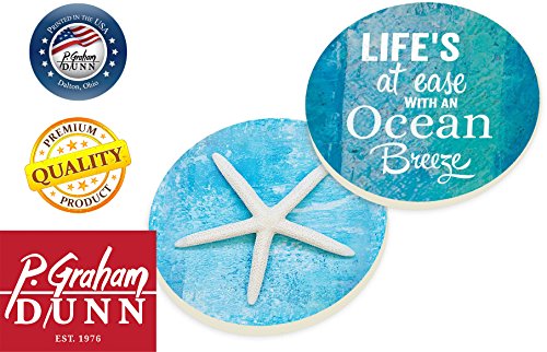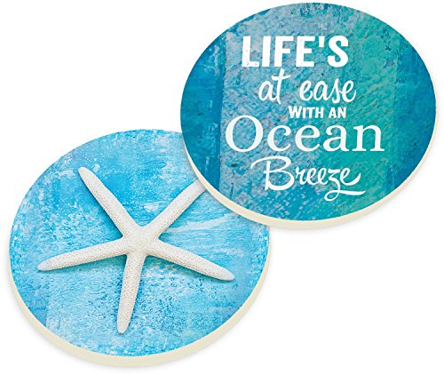 Life's At Ease With An Ocean Breeze Coastal Starfish Ceramic Car Coaster Pack (Set of 2)