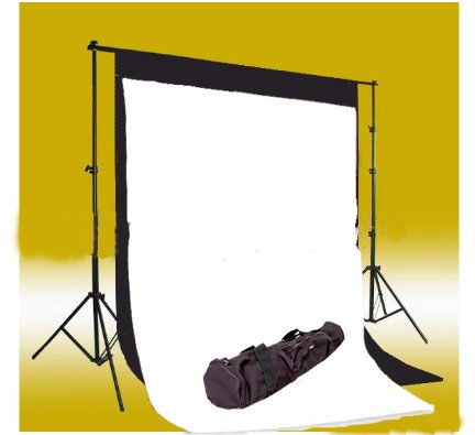 CowboyStudio Photo Muslin Background Support System with One Background Support Set with 1 carry case and Black & White Muslin Backdrops