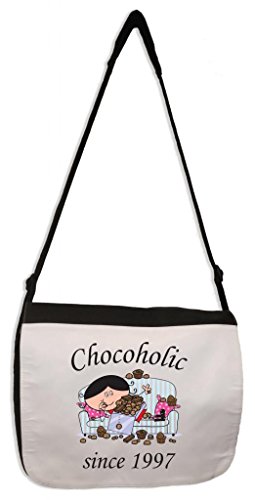 -. Brand : Tribal T-Shirts -. ClothingSize : One Size -. Color : Black -. EAN : 5055884314496 -. Feature : Classic messenger bag. / Will fit a standard size 14" laptop. / The bag has a capacity of appoximately 12 litres. / It is made from tough waterproof polyester. / The dimensions are 37.5 x 30 x 10.5cm. -. Label : Tribal T-Shirts -. Manufacturer : Tribal T-Shirts -. MPN : FRAZ_chocoholic18th_mbag -. PartNumber : FRAZ_chocoholic18th_mbag -. ProductGroup : Shoes -. ProductTypeName : HANDBAG -. Publisher : Tribal T-Shirts -. Size : One Size -. Studio : Tribal T-Shirts -. Title : Tribal T-Shirts Chocoholic Since 1996 Women's 18th Birthday Laptop Messenger Bag