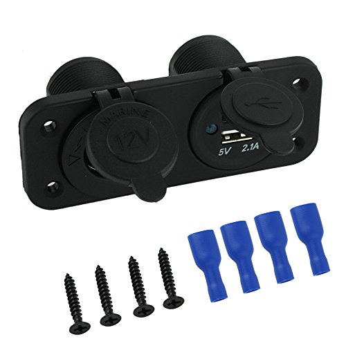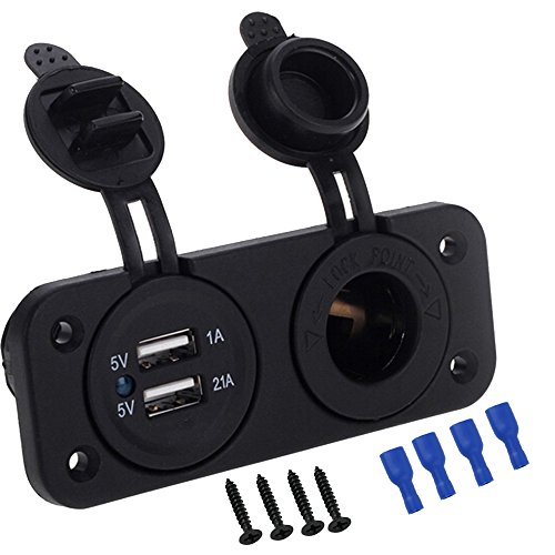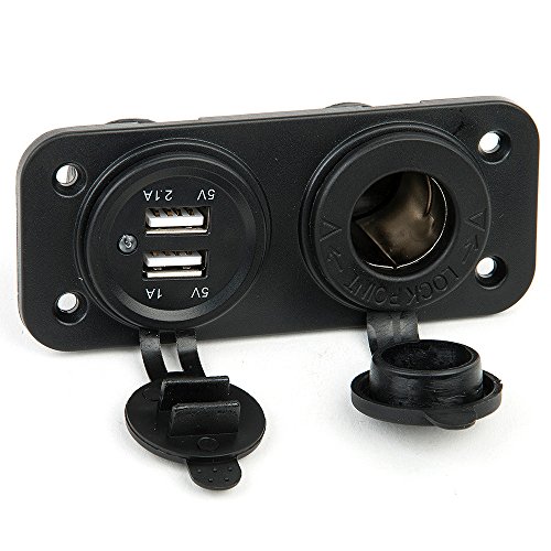 SQDeal 12V Universal Cigarette Lighter Socket Dual USB Power Adapter Charger for Car Auto Motorcycle Boat Boat Riding Mower Tractor Travel Trailer Caravan (2 in 1)