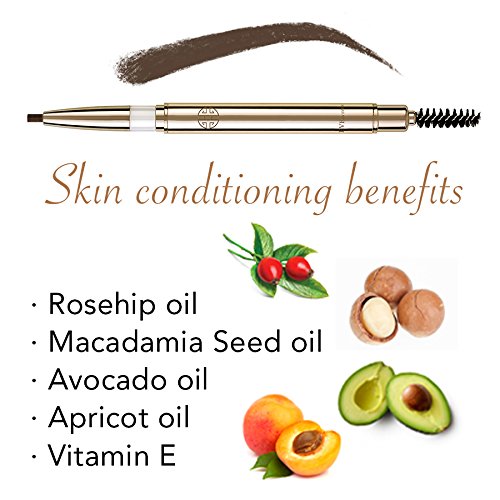 - An ultra-sleek, retractable eyebrow pencil that's a triple-threat: pencil, powder and pomade. Create natural, fuller-looking brows in just a few strokes. Formulated with conditioning ingredients such as Rosehip oil, Macadamia Seed oil, Avocado oil, Apricot oil, and Vitamin E, this long-wearing brow definer offers a smooth application in a smudge-proof formula.