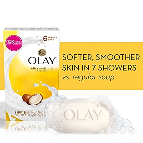 Regular soap can leave your skin dry, but Olay ultra moisture Shea butter beauty bar is different. This beauty bar with shea butter is specially formulated with creamy Olay lather and nourishing conditioners to leave your skin more hydrated with continued use. After just 7 days, you'll feel softer, smoother skin. It goes beyond cleansing, delivering 10x more moisturizers than regular soap to help wash away dry skin cells for radiant, beautiful skin. It's even gentle enough to use on your face.Feature