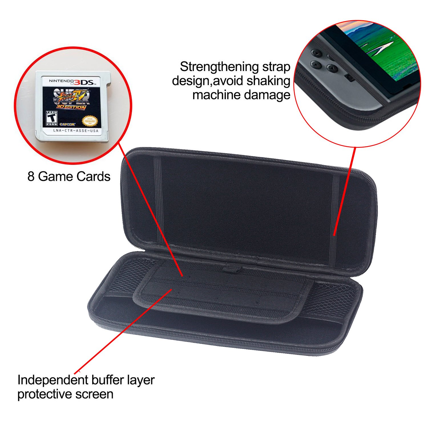 Keep your new Nintendo Switch Console protect with YZtree's Black Carrying Travel Case. This case is designed to offer premium protection from drops and bumps, while offering you full access to all of your Switch Accessories! You can store up to 4 games , a charger, or Joy-Con controllers with the console. This is simply the perfect companion for your new Nintendo Switch. (Console Not Included)
