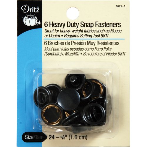 Dritz Heavy Duty Snap Fasteners - Black - Size 24 - 5/8 inch - 6 Count