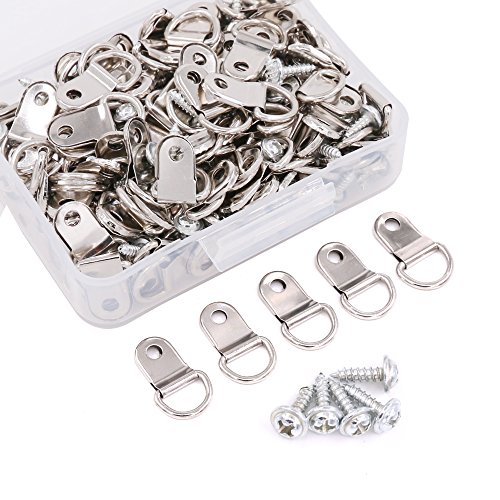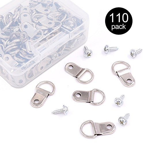 Findfly 110Pcs Silver Metal D Ring Picture Hangers Frame Hanging Hangers Single Hole with Screws for Picture Painting Frame Cross-stitch