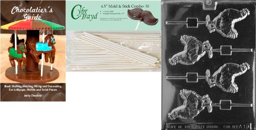 Cybrtrayd 'Rooster Lolly' Animal Chocolate Candy Mold with 50 4.5-Inch Lollipop Sticks and Chocolatier's Guide