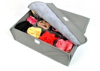 -. Feature : 12 compartment drawer organiser with lid / Stylish design / Keeps jewellery, socks, underwear, and anything you can think of organised! / Absorbs odours and also has anti mildew properties / Stackable with strong outer structure