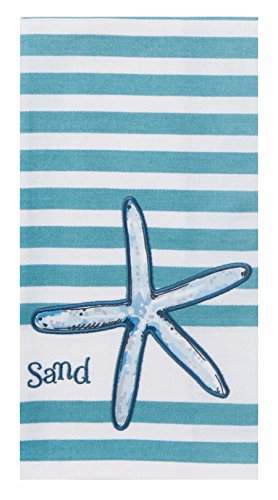 Tea towel features starfish applique with embroidery detailing