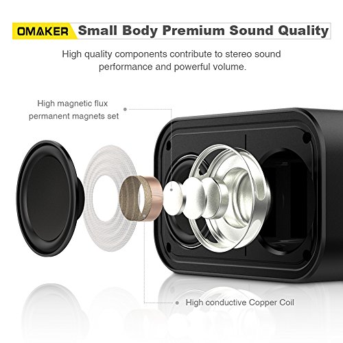 Premium Sound: In terms of such size, most are single-driver speakers, but Omaker M7 has Dual 3-watt drivers, with high magnetic flux permanent Magnets Set which improves the whole sensitivity of the speakers, and high conductive Copper Coils which provides better fidelity of sound details. Moreover, with the boost of Passive Radiator, M7 streams loud stereo audio.