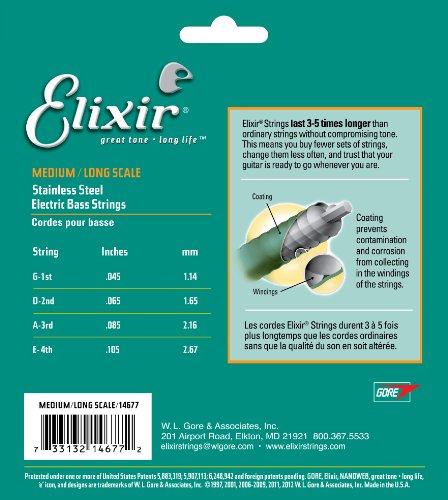 (Elixir)/Instrument Accessories/Guitar Bass Accessories/DIRECT FROM USA/Elixir® Strings Stainless Steel Electric Bass Guitar 4-String Set with NANOWEB® Coating