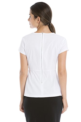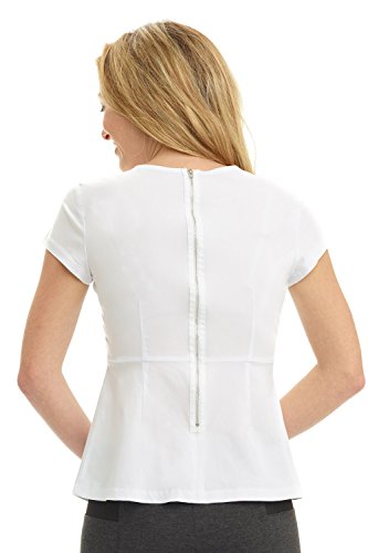 Binding : Apparel Product Description The classic short sleeve blouse reinvented with modern style. Crafted in blouse weight fabric with a hint of stretch this top is an updated take your favorite white blouse, looks great and moves with you all day and night. Transition easily from desk to dinner. The peplum shape accents your curves, giving the illusion of a narrower waist and hourglass curves, and the back zip gives a hint of unexpected bling. 0