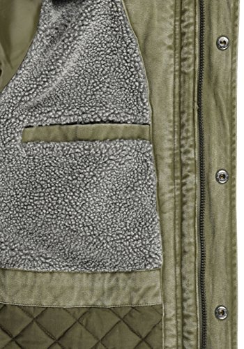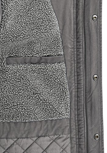 DETAILS & HIGHLIGHTS: Schwer wattiert, Teddy-Futter, hochabschliessender Stehkragen, Kapuze mit Teddy-Futter und abnehmbarem Kunstfell-Kragen samt Kordeln, zwei Brusttaschen (Druckknopfe), zwei Pattentaschen samt seitlichen Eingriff (Druckknopf) sowie eine Innentasche (Druckknopf), dekorative Armel- sowie Schulterlaschen mit Druckknopf-Verschluss, gerippte und elastische Armelbundchen, verlangerte und abgerundete Ruckenpartie, Reissverschluss mit Druckknopfleiste, zahlreiche Kunstlederapplikation