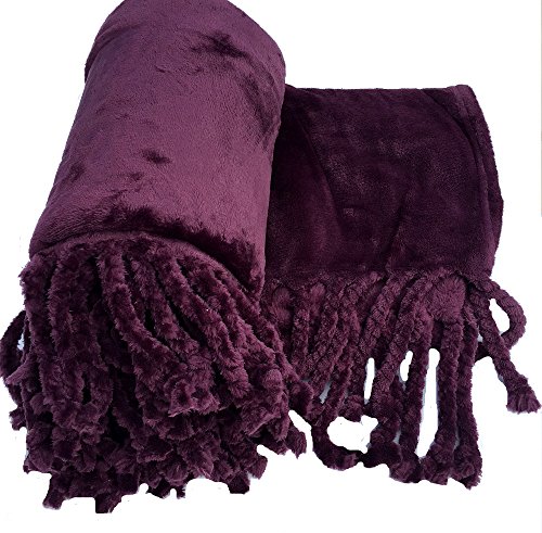 Plush Throw - Velvet Plush Throw with Fringes, Comfy and Warm, Rich and Solid Color, Choice of Tangerine, Turquoise, Purple and Black - 50 x 60 (PURPLE)