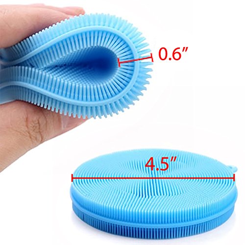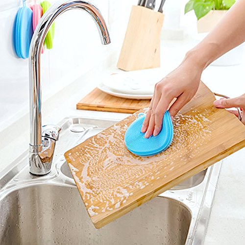 - Silicone scrubbers with thick and soft bristles, easy to reach the corners of glasses and perfect for light washing, like washing dishes, plates, pan, fruit, vegetable and so on.