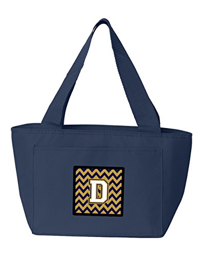 Caroline's Treasures CJ1057-DNA-8808 Letter D Chevron Navy Blue and Gold Insulated Lunch Bag, Large, Multicolor