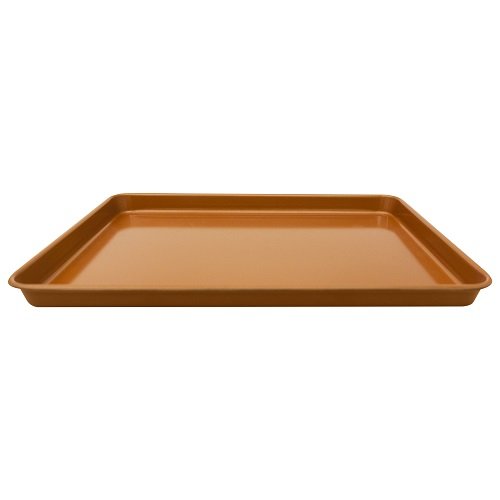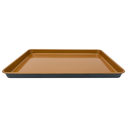 Gotham Steel cookies tray perfects for chocolate chip, lemon shortbread and oatmeal raisin cookies. Nonstick inside and out delivers great food release and makes cleanup quick, even after baking a gooey batch of caramel fudge cookies. Oven safe to 500 Degree, this nonstick cookie pan makes an ideal addition to the cake, muffin and specialty baking pans.Feature