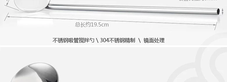 产品数据 —————————————————————————— 品牌:SINGERPOGE™ 辛格铂致 品名:STAINLESS STEEL ICE BUCKET 不锈钢吸管 搅拌勺 编号:SP7613 产地:中国 材质:18/8(304)不锈钢 规格:管径约5mm,圆勺直径3.2cm,总长19.5cm 表面处理:精抛镜面亮光 用途:吸食各种饮料,夏日冷饮使用;搅拌咖啡 奶茶;调酒使用等