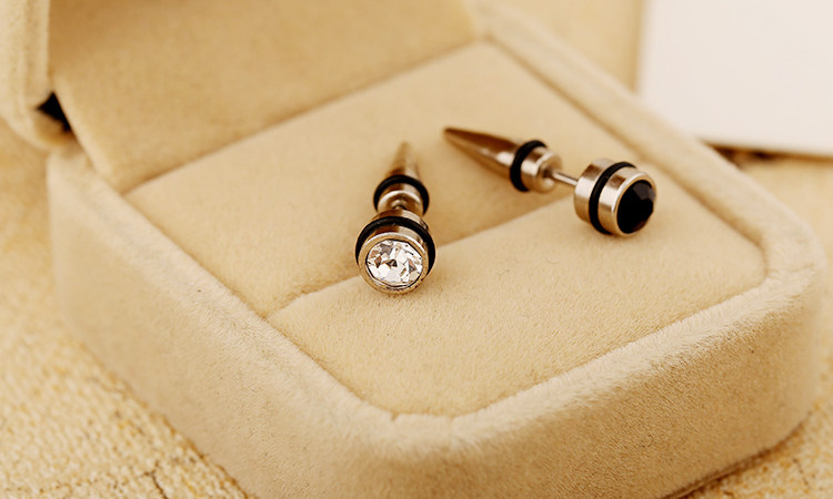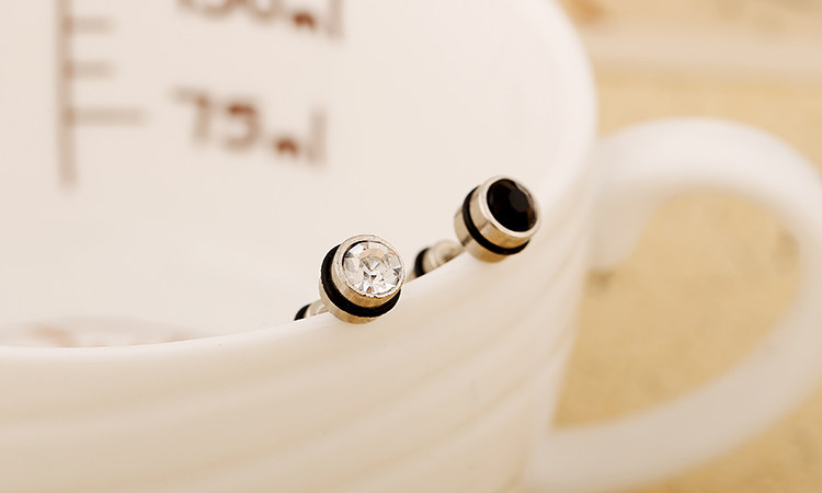 Simple black and white rhinestones personality titanium steel earrings